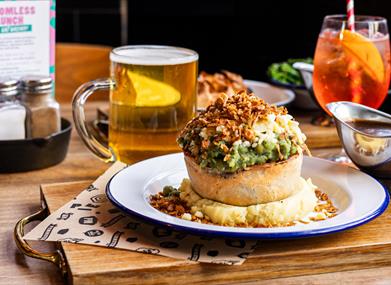 A much-loved Bristol family business, Pieminister is famous for making its range of award winning pies in the city since 2003. Set in a fantastic historic building in the heart of the city, you can eat in or sit outside, with views of the harbourside and the fountains on Broad Quay. Opposite the Hippodrome and a short walk from the Old Vic, this is the perfect spot for pre-theatre dinner with 2 for 1 cocktails all day, everyday.