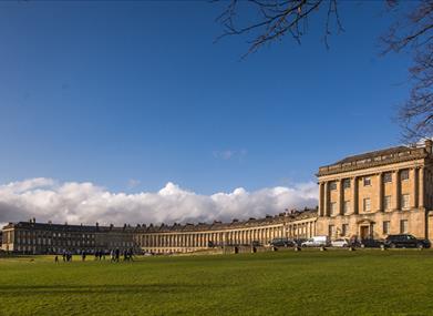 The Royal Crescent consists of 30 Grade I Listed terrace houses, arranged around a perfect lawn overlooking Royal Victoria Park. Its sweeping crescent shape stretches 500 feet long and features a unique ha-ha, a sunken wall originally designed to keep grazing animals away from the formal garden areas.