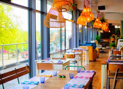 Known for its vibrant decor and panoramic views of the city centre, Bambalan brings a fresh and dynamic atmosphere to your corporate experience. Boasting a large open plan restaurant with ceiling to floor windows the space is flooded with natural light and easy-going vibes are perfectly complimented by our award-winning Mediterranean food.