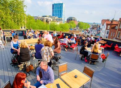 - The all-encompassing stylish city rooftop features quirky furnishings and stunning views.