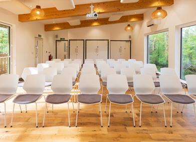 Bear Wood Event Space is contemporary and purpose-built, set in the heart of the zoo with a backdrop of the award-winning Bear Wood, directly overlooking the wolf habitat. Boasting natural light with floor- to- ceiling windows, the room is flexible, dynamic and suitable for meetings, workshops and team days for up to 40 guests, theatre-style.