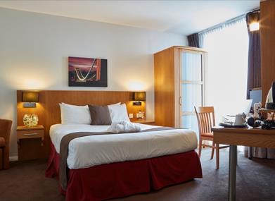 Despite its top floor location, the facilities are entirely accessible, thanks to lift access, wide doors on the whole level and fully accessible toilets. All public areas and meeting spaces in the hotel are accessible for wheelchair users, with open spaces and wide corridors. Meanwhile, disabled parking bays behind the hotel offer direct access to the lobby. There is a choice of accessible double bedrooms on the ground floor and higher floors. They each have a double bed and a spacious layout that's easy to move around. The private bathroom is a walk-in wet room with a lowered sink and towel rail to keep things within easy reach.