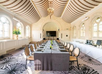 The Gainsborough Bath Spa offers two distinctive function spaces ideally suited for corporate meetings, conferences, and business events. The Chapel provides a bright, spacious venue with stunning architecture and natural daylight, while The Somerset Room overlooks Spa Village Bath and features elegant period detailing with modern audiovisual capabilities and complimentary WiFi.