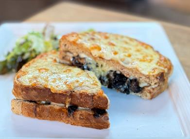 The menu includes a range of hot and cold drinks, homemade cakes, pastries, sandwiches and toasted panini's, plus a new brunch menu featuring both comforting classics and lighter options. Favourites include the Croque Monsieur with cured ham and Gruyère, the Croque Madame topped with a soft egg, and a daily Soup of the Day served with rustic bread. Panini options include Chicken Pesto, Reuben, Greek Grilled Cheese, Tuna Melt, and a vegan grilled vegetable panini, making it an ideal stop for families, walkers and dog owners.