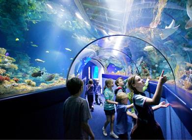 Bristol Aquarium transports you and your family and friends on a spectacular undersea safari. Wander through the Underwater Tunnel to watch fascinating marine life swim over your head.